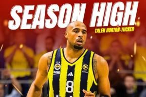 此役,费内巴切新援、曾随湖人夺冠的塔伦-霍顿-塔克表现出彩,他仅登场23分钟15投11中,罚球4中3,砍下25分创个人赛季新高,还有6篮板1助攻1盖帽进账。