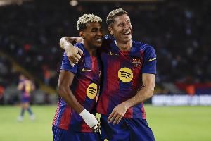 上赛季同一时期,巴萨三叉戟曾迎来大爆发,在5场关键比赛中合力打入14球并送出6次助攻,包括在伯纳乌4-0大胜皇马(莱万2球,亚马尔1球,拉菲尼亚1球1助)以及4-1击败拜仁。弗里克希望这并非昙花一现,并期待他们能重现上赛季震慑欧洲的强大攻击力。
