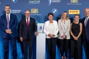 拜仁慕尼黑再次获得荣誉,继长期担任董事会主席的卡尔-海因茨-鲁梅尼格被州长马库斯-索德尔授予个人奖后,拜仁慕尼黑女足也在一个庄重的仪式上,由索德尔和巴伐利亚内政部长约阿希姆-赫尔曼授予“巴伐利亚体育大使”称号。这一奖项不仅表彰了球队在体育方面的成就,还特别肯定了她们在公平、多样性和社会凝聚力方面的贡献。