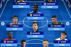 中场:斯卡尔维尼(亚特兰大,3500万欧)、皮西利(罗马,1300万欧)、沃尔帕托(萨索洛,650万欧)、尼翁托(利兹联,2200万欧)